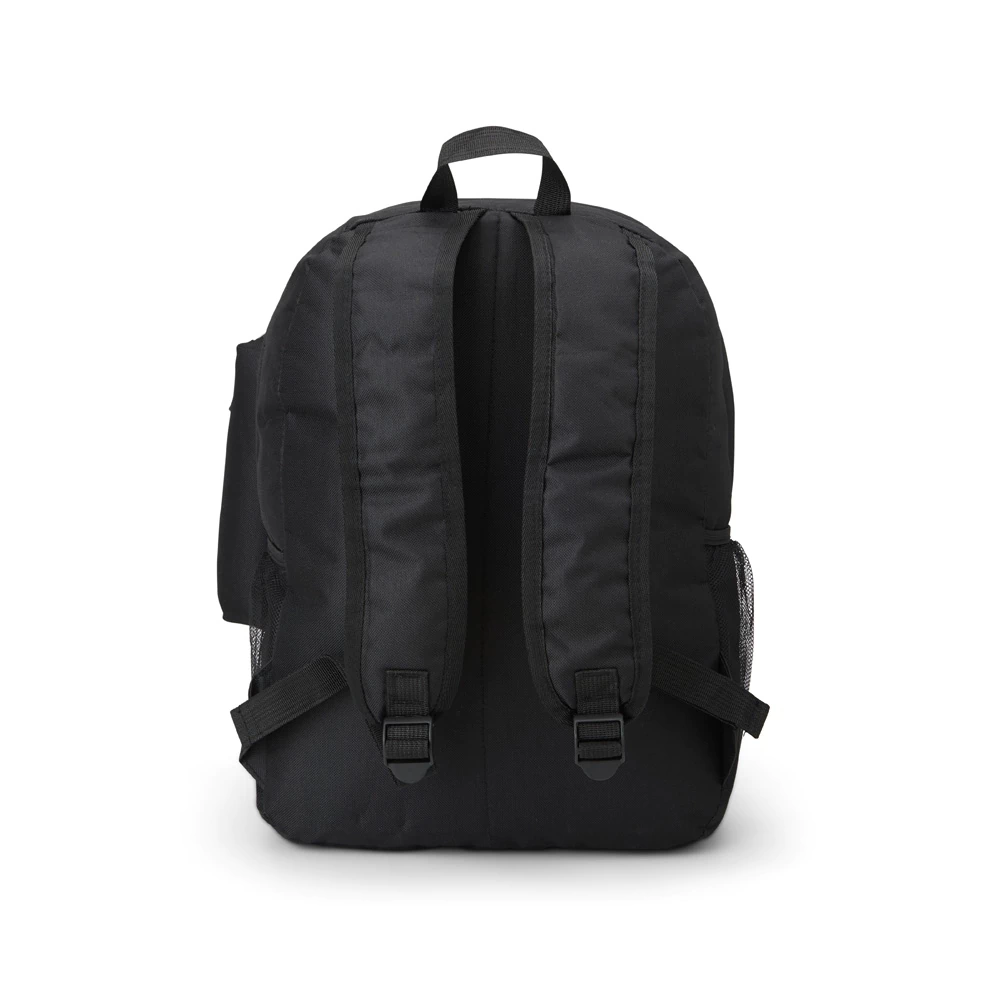 Mochila de nylon de 27 litros com dois compartimentos, sendo um bolso raso para notebook de 15,6 polegadas e bolsos laterais telados. Acompanha estojo de nylon.